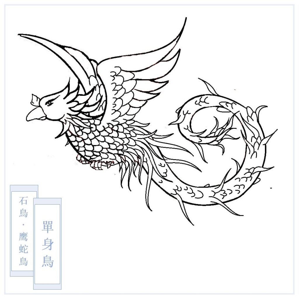 – Những người yêu thích sự thanh tịnh, lại có tâm tình phẫn nộ nếu sự thanh tịnh, an tĩnh họ đang tận hưởng bị quấy nhiễu. Những ý niệm vừa băng lãnh, vừa thanh tịnh đối lập mạnh mẽ như thế, khi tích tụ lâu ngày ở một tảng đá, một pho tượng nào đó, tự nhiên sẽ hiển hóa thành linh thú có thân hình chim, có đuôi rắn ẩn khuất nơi tảng đá, pho tượng ấy. Anh linh như thế có tên gọi là Thạch Điểu, Ưng Xà, Kê Xà, Đơn Thân Điểu.
